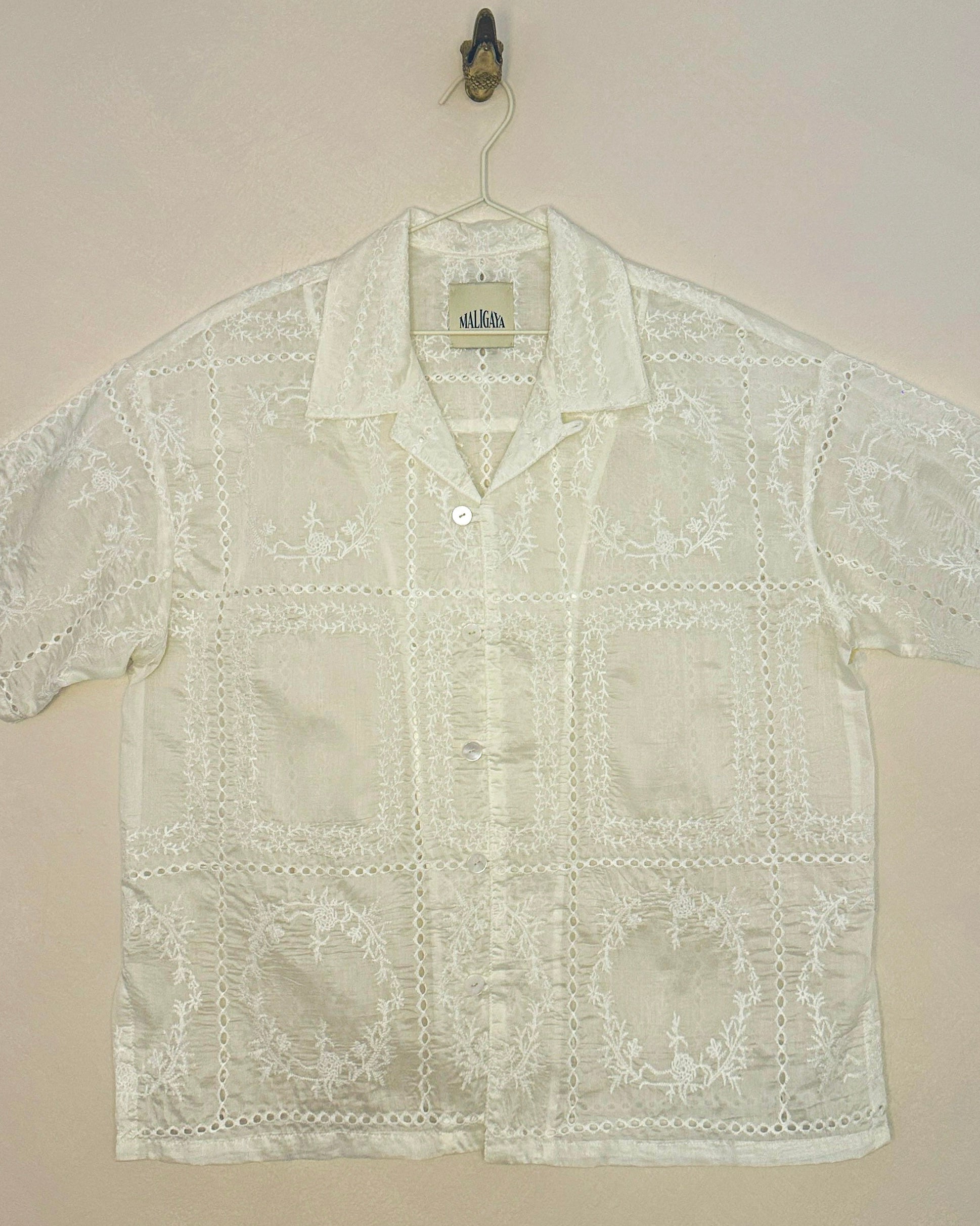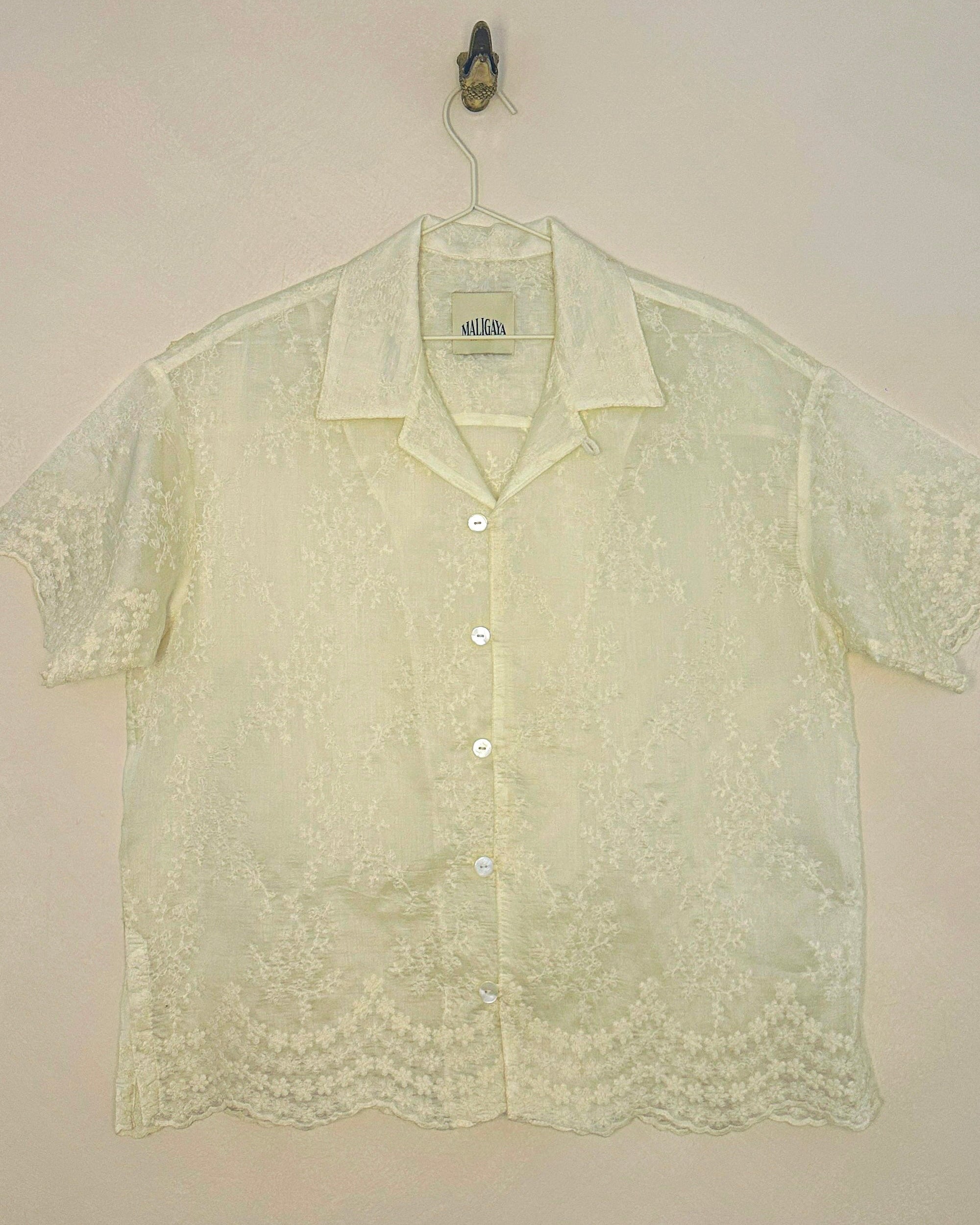 DESCRIPTION:•Cuban collar short sleeve •Handmade from embroidered cotton gauze fabric•Detailed floral embroidery •Hand...