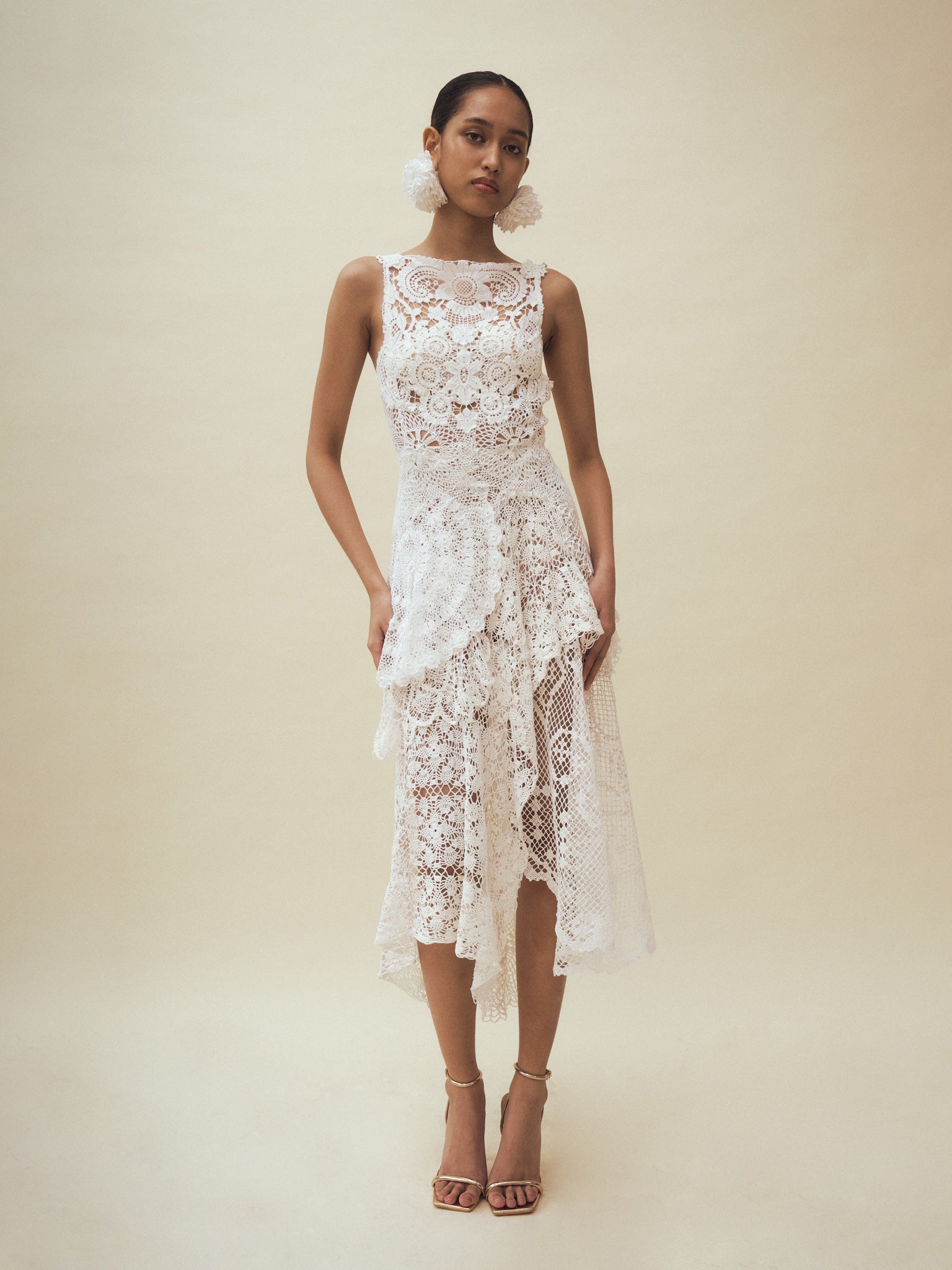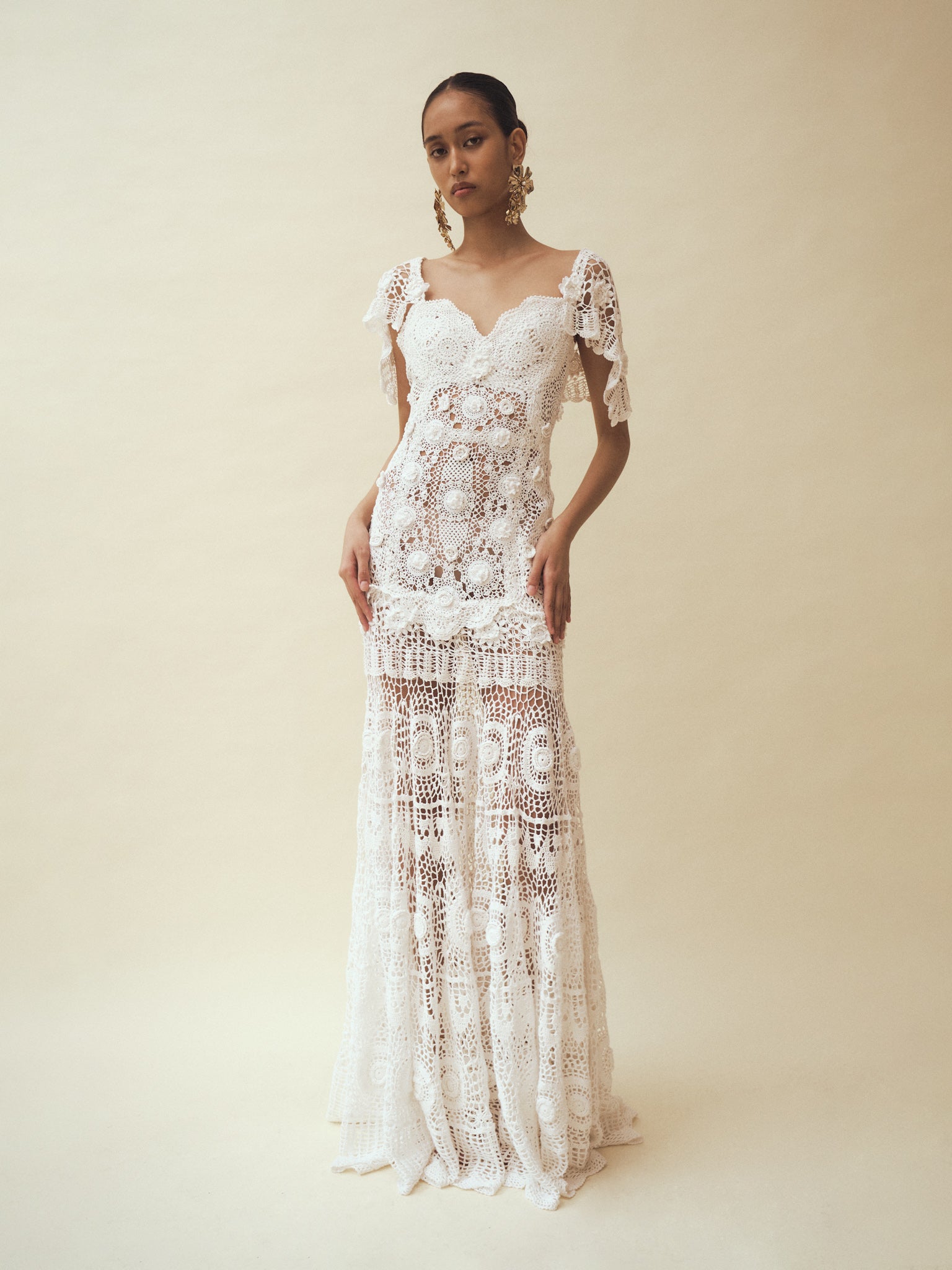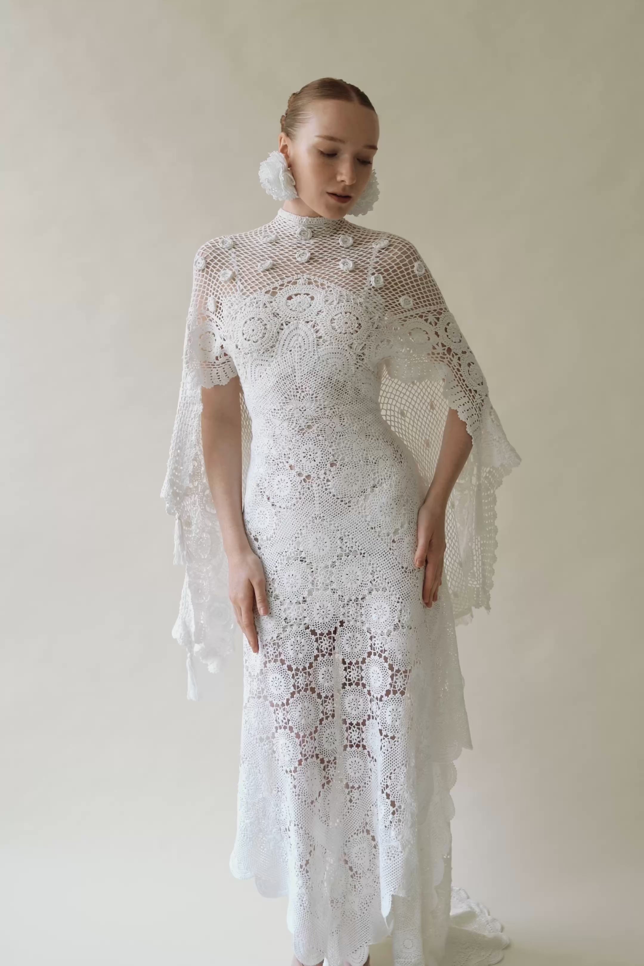 Handcrafted from repurposed vintage crochet doilies with 3D floral appliqués, all...
