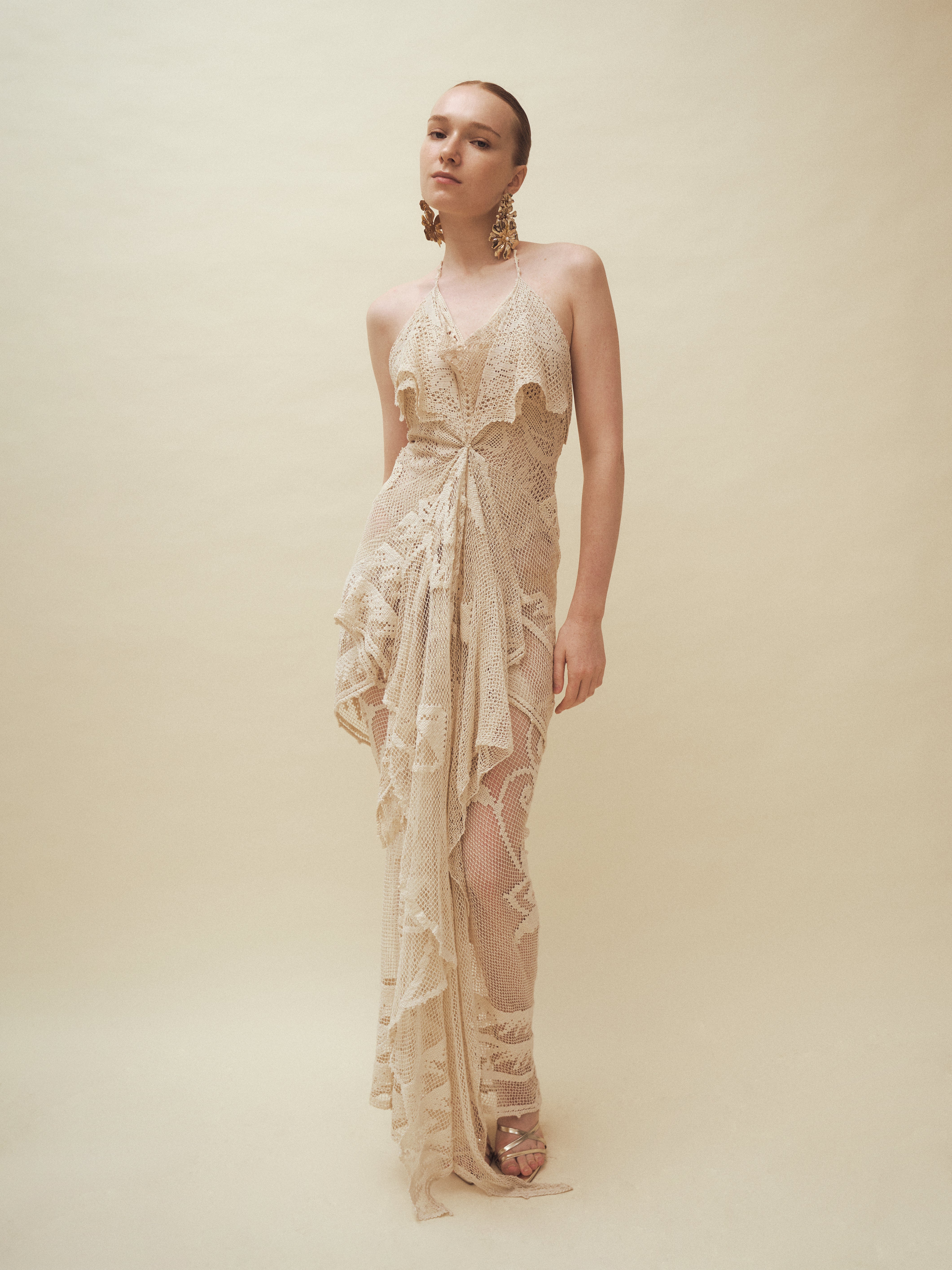 Handcrafted from repurposed vintage crochet doilies, this set is photographed in its...